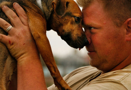 Mike Hotard, of Hotard Wildlife Control holds his terrier mix Cybil after she successfully tracked a nutria through a burrowed hole through the banks of Bayou St. John, Tuesday, March 16, 2010. Ted Jackson / The Times-Picayune